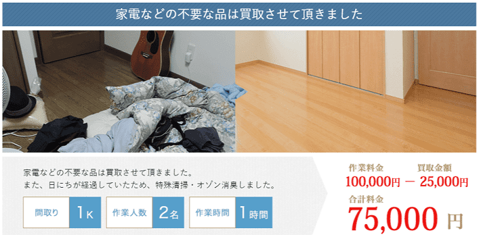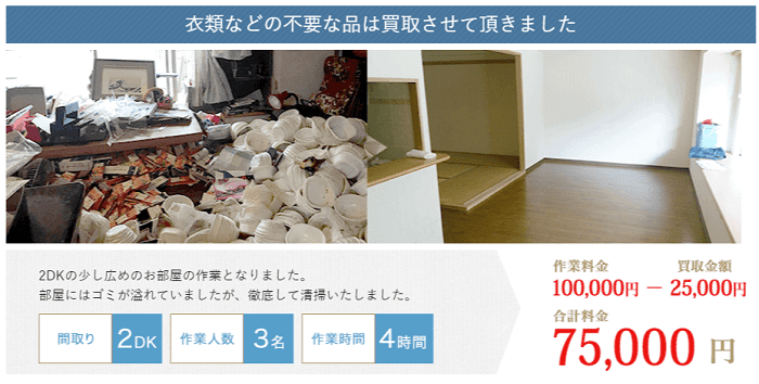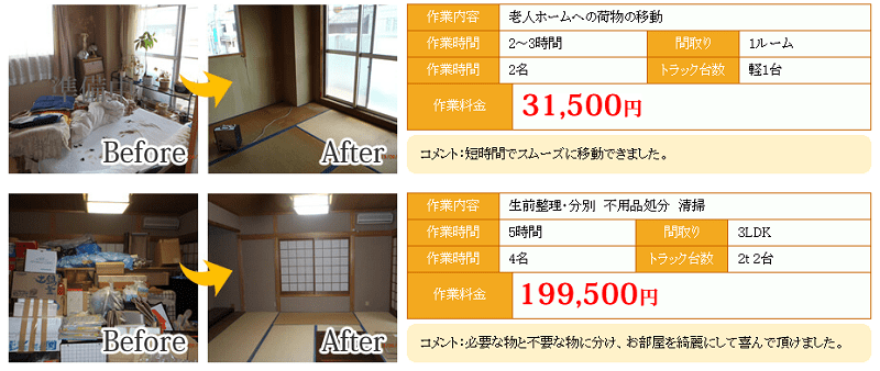 また、基本的に見積もり費用が変わる(=追加費用が発生する)ことは一切ありませんので、安心して片付け作業をお任せできます。