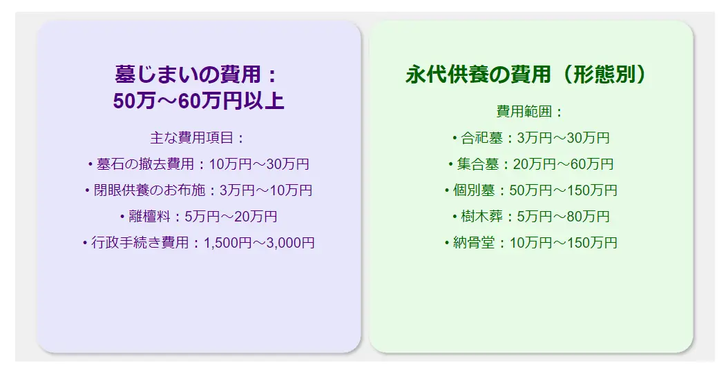 墓じまいと永代供養の費用について、重要なポイントをまとめます。