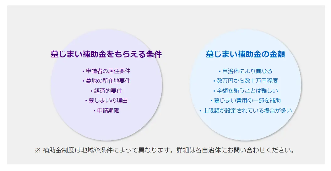 – 墓地の所在地要件:補助金の対象となる墓地が自治体内にあることが条件となる場合があります