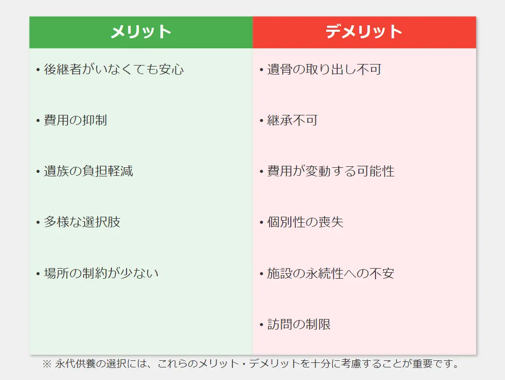 長期的な視点では、永代供養を選択することで管理の手間や将来的な費用負担が軽減される可能性があります。