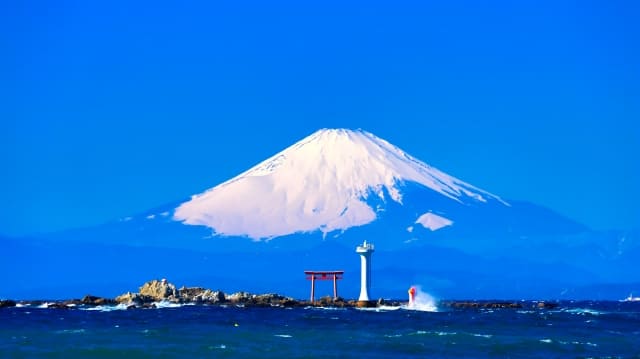 石原裕次郎灯台と富士山