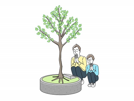 - 1本の木に1人(または一家族)の遺骨を埋葬