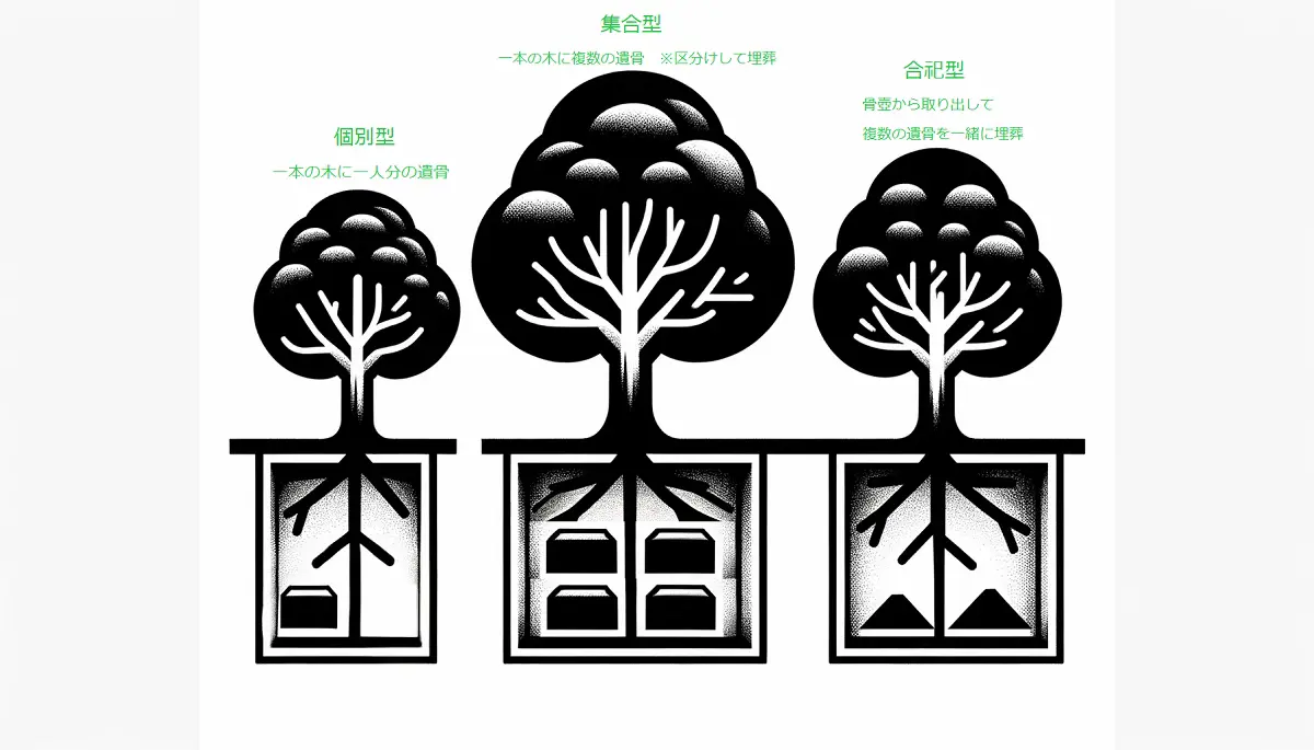 樹木葬には、遺骨の埋葬方法によって3つの種類があります。