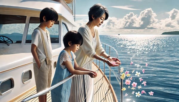 - 献花:花びらや造花を海に流し、故人への想いを表します。