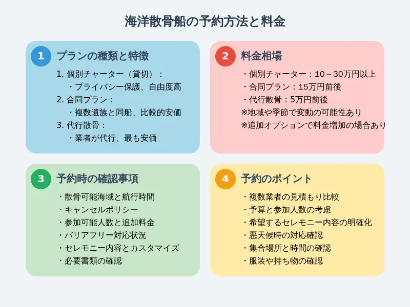 海洋散骨船のチャーターや貸切は、故人との最後の別れを静かに、そして心を込めて行いたい方にとって理想的な選択肢となります。ただし、費用面での負担が大きくなる可能性もあるため、十分に検討した上で決定することが大切です。