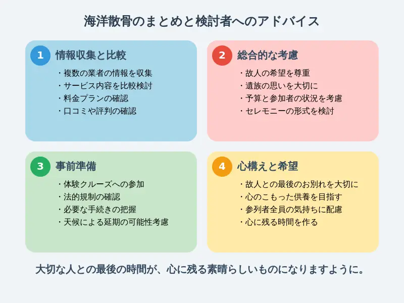 まとめ:海洋散骨を検討されている方々へのアドバイス