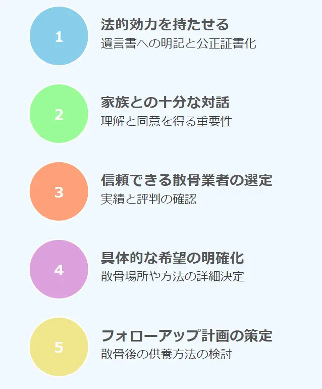 • 具体的な希望の明確化:散骨場所や方法の詳細決定