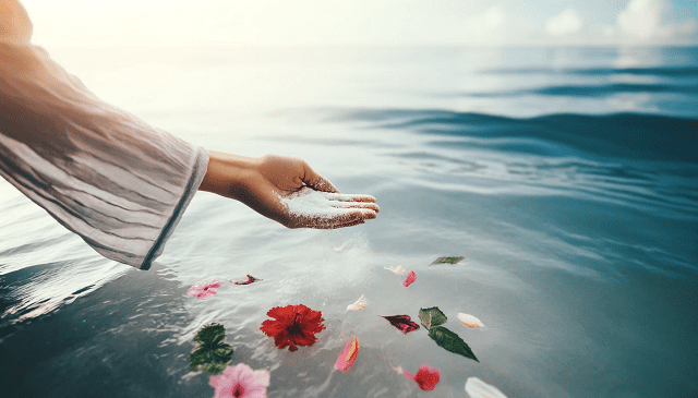 散骨のセレモニーが始まり、夫の遺灰を海に投下する瞬間、涙が溢れそうになりましたが、心の中で「ありがとう」とつぶやきながら、静かに別れを告げることができました。花びらが海面に広がる様子は、まるで夫が海と一体になっていくようで美しく感じられました。