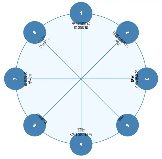 – 参列者への注意事項(服装、持ち物など)を確認します。