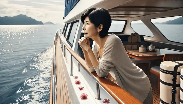乗船すると、想像以上に明るい雰囲気に少し戸惑いましたが、それは夫の人柄を表しているようで、不思議と心が軽くなりました。船内には夫の好きだった音楽が流れ、家族の笑顔が見られたことに、夫も喜んでいるだろうと感じました。