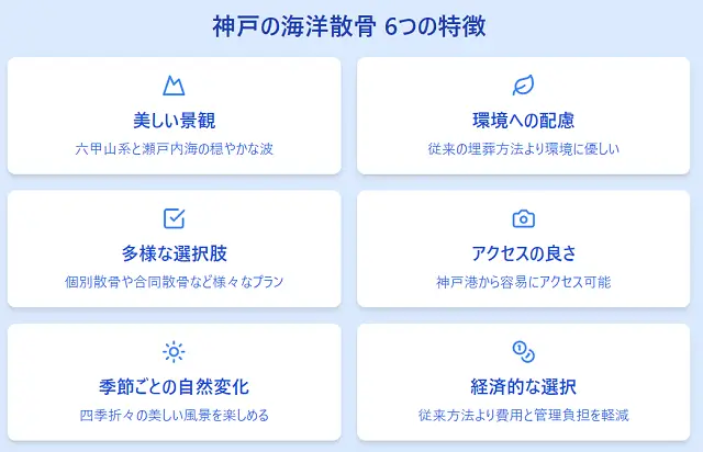 - アクセスの良さ: 神戸港からのアクセスが容易で、遺族の負担が少ないのが特徴です。