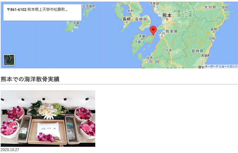 「やさしい海洋散骨」はやさしいお葬式が提供している海洋散骨サービスです。ここでは「やさしい海洋散骨」を使って熊本エリアで海洋散骨を行った方の口コミを紹介します。