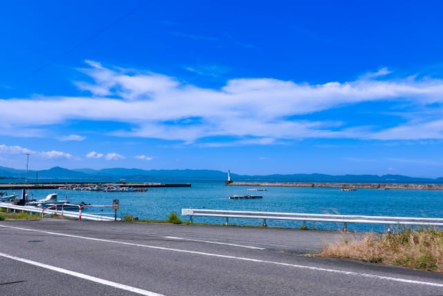 合津港周辺は、青く澄んだ海と緑豊かな山々が織りなす風景が魅力の一つです。海岸線に沿って広がる美しいビーチや、潮風に揺れる草木は訪れる人々を和ませます。